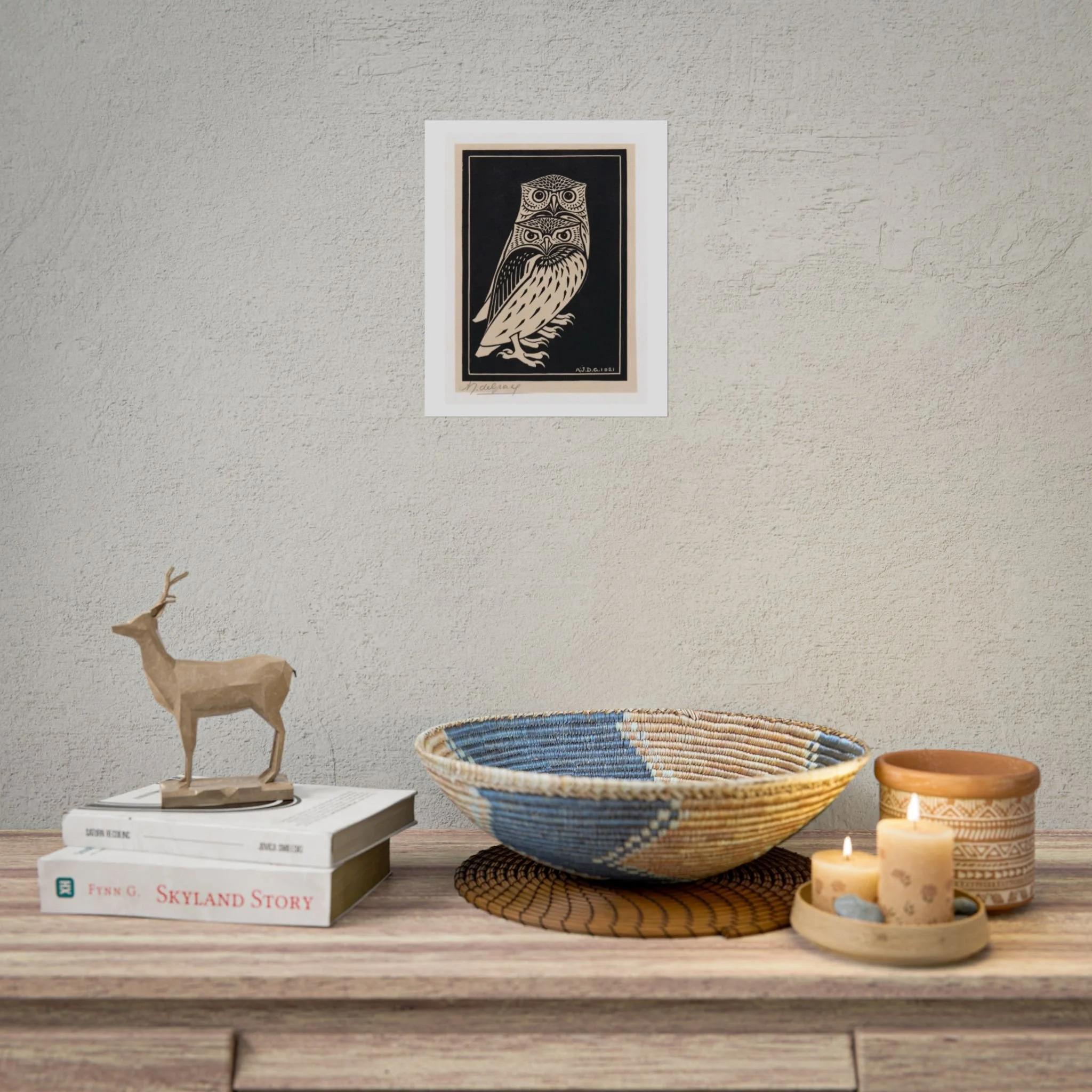 Enhance your home with the bold, refined beauty of this Julie de Graag "Two Owls" art print. Created in 1921, this striking vintage Dutch woodcut is a masterclass in Graphic Art Nouveau, showcasing de Graag’s signature ability to distill nature into powerful, essential forms.
